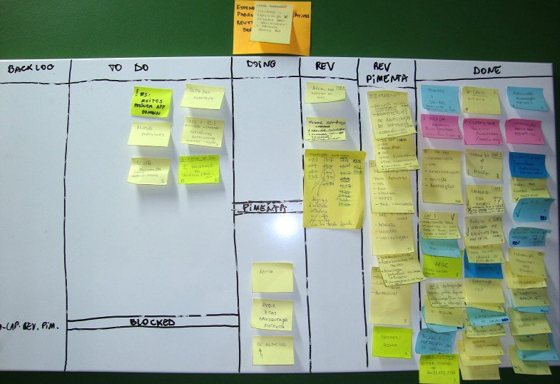 Veja as cinco fotos a seguir do uso do quadro de Kanban durante a escrita.
