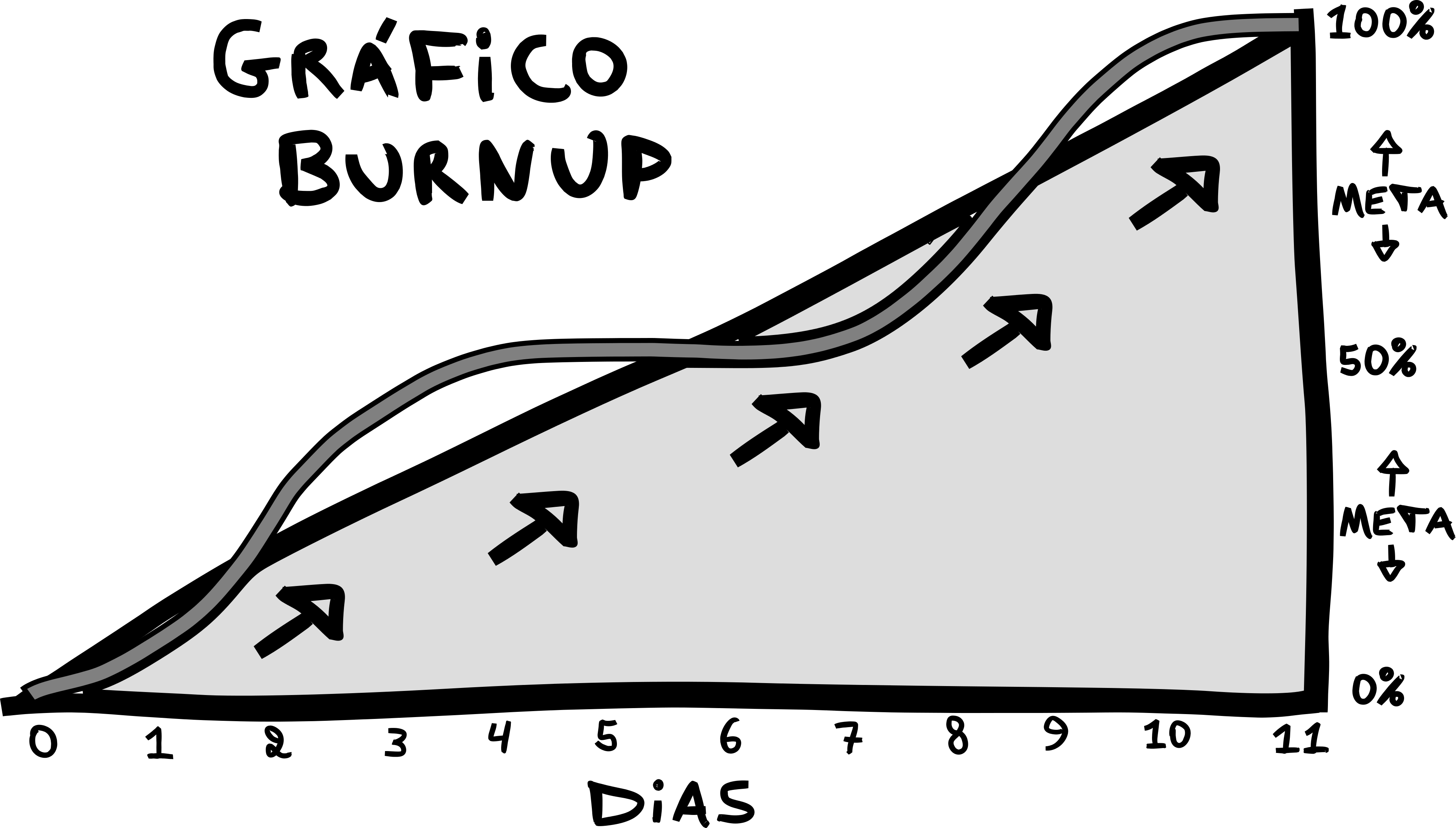- Você pode usar um gráfico de Burndown em vez de um Burnup. É o mesmo gráfico, porém invertido. Então, em vez de subir no somatório da produtividade, ele desce.